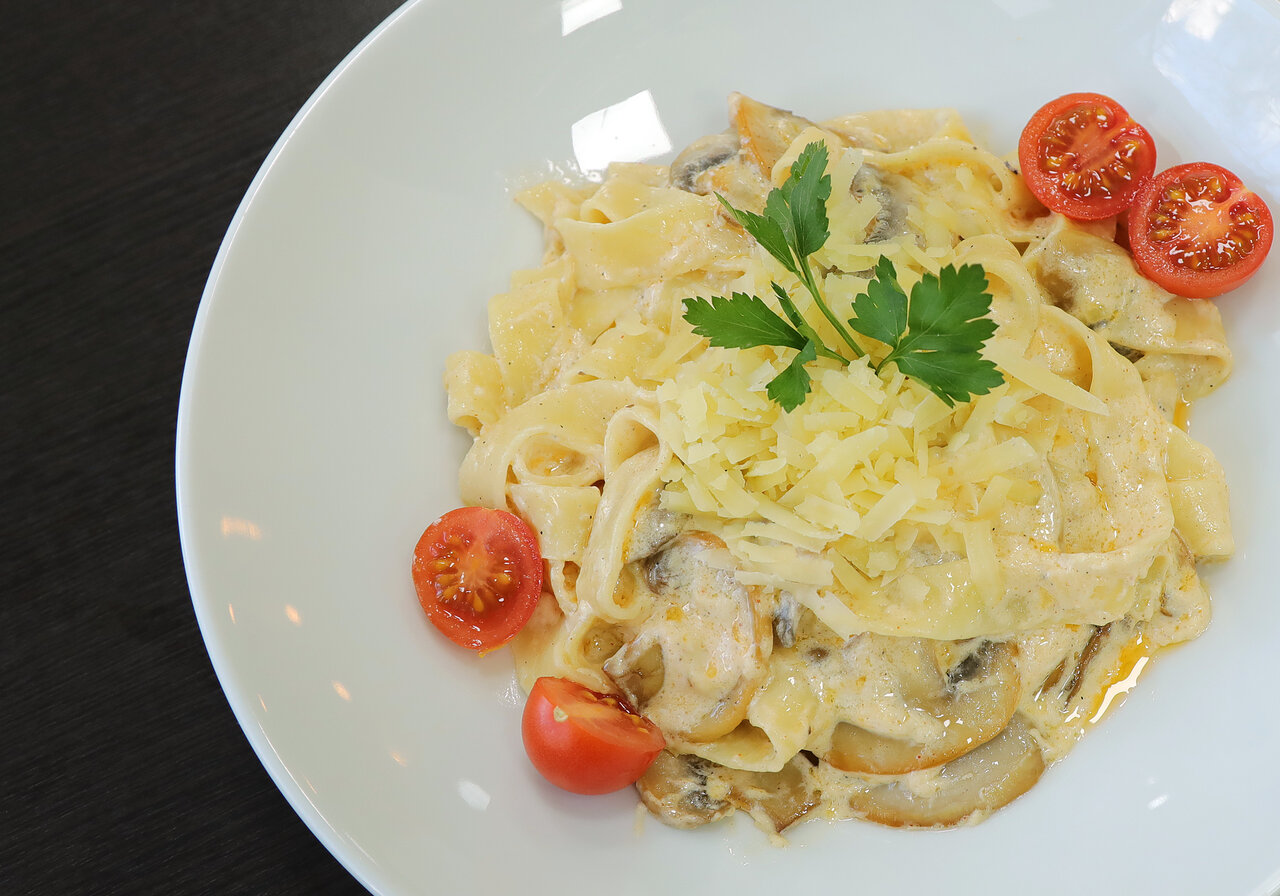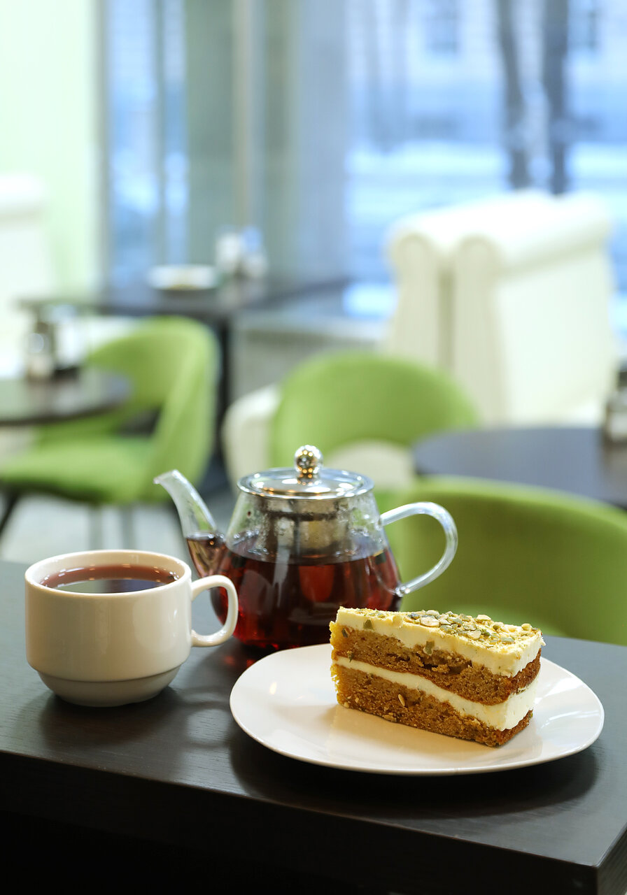 Несмотря на расположение (внутри квартала) очень неплохое, опрятное кафе. Бизнес-ланч с большими порциями и ооочень вкусный. Меню разнообразное, на выбор. Официанты в перчатках приносят еду, десерты подают также в перчатках. Рекомендую.