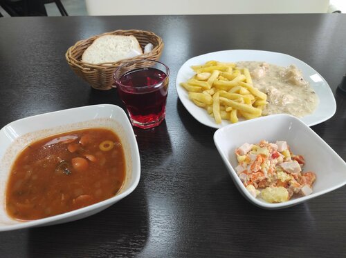 Кафе-столовая, очень милое заведение. Официанты приветливы, на подаче стоят в перчатках(что важно для меня). Столы чистые. Бизнес-ланч разнообразен. Советую.